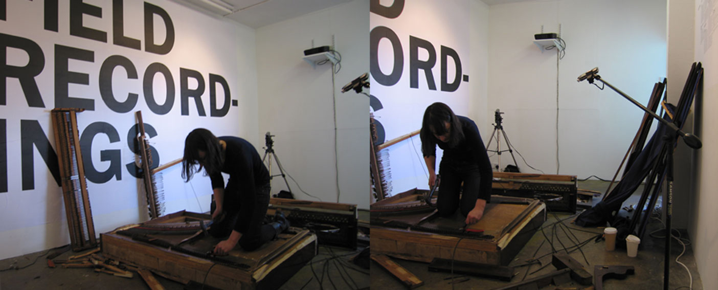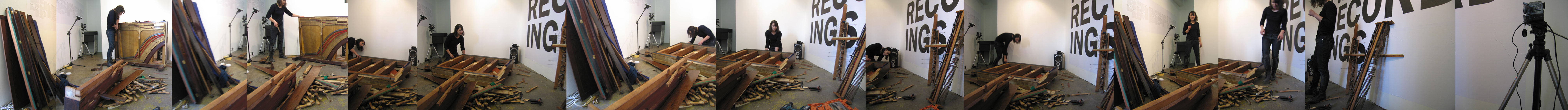 I propose to record myself taking apart an upright piano over the course of a day, from complete instrument down to separate parts strings, hammers etc. I will record the event with a digital camcorder, which will be left to film from a static position for the duration of the gallery opening hours. If possible, a television monitor outside the gallery will show the ‘live’ footage. This screen would be the viewer’s only portal to the events occurring inside the gallery, besides the sounds escaping. I already have the piano in my possession, and have measured the goods lift to ensure that it fits. ![]() ![]() ![]() ![]() ![]() ![]() ![]()