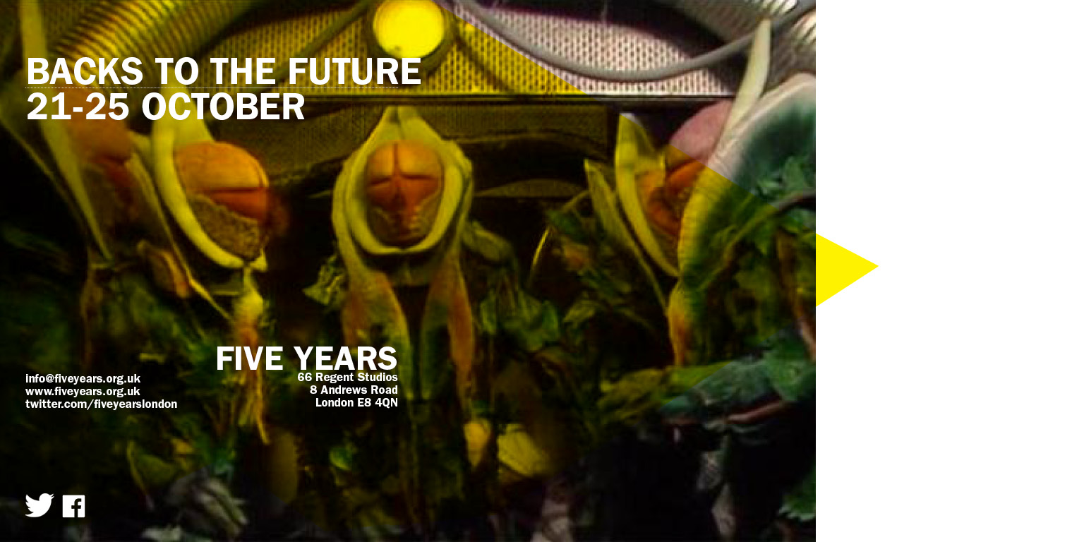 BACKS TO THE FUTURE is a guest residency as part of Esther Planas’ School of Calidity at Five Years, London. Growing out of a series of meetings with LUX Critical Forum over the past 18 months, where Planas was a participant, six artists—Sam Mercer, Annette Philo, Jarrod Sanderson, Markus Soukup, Shelley Theodore & Emma Tod—will be developing and presenting new work in cooperation with one another.